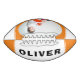 Personalized Football with Name and Photo. Custom football with a name and photo. The design has orange stripes on a white background. A perfect gift for a football player. Great gift for a birthday or Christmas.