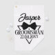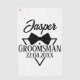 Introducing our Personalized Groomsman Golf Towel, a stylish and sophisticated accessory for golf-loving groomsmen. This towel features an elegant design with a bow tie accent, adding a touch of class to their golf gear. Each towel can be personalized with the groomsman's name or initials, making it a unique and thoughtful gift. Crafted with high-quality materials, this golf towel is highly absorbent and durable, perfect for keeping clubs and hands clean during their golf rounds. With its convenient clip, it can easily be attached to golf bags or carts for quick access. Show your appreciation to your groomsmen with this personalized and elegant golf towel, adding a touch of luxury to their golfing experience.