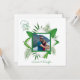 Your favourite couples photo and personalized text highlight this green leaf square Save the Date invitation card.