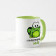 I am very pleased with this mug. It is much bigger than I thought it was going to be, and it is thick and of good quality. It is exact white, not faded. It came right on time and was well wrapped. It looks exactly like the sample picture. The printing is clear and dark, not faded at all. The frog is super cute and exactly this color green! I am very happy with this order.