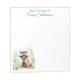 Cute personalized notepad with an ai watercolor green in blue and brown whimsical watercolor raccoon illustration background. Add your name in the personalize area.
