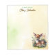 Cute personalized notepad with an ai watercolor green and orange whimsical watercolor baby deer fawn in flowers woodland forest animals illustration background. Add your name in the personalize area.