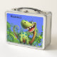 Personalized Fun Blue Dinosaur Metal Lunch Box