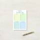 This practical, clean looking, personalized, notepad with four coloured categories with lines to write on and boxes to check off would be great for helping you organize your daily tasks. It's soft pastel colours are yellow, green, aqua, and blue and the modern, clean fonts are in teal. Get some for yourself and some for friends and loved ones. Because who can't use a little help staying organized and on task every day?