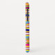 This cell case cover has a colourful pattern of triangles and horizontal stripes in bright yellow, green, pink, blue, burgundy, white, and navy. Customize the white and hot pink circle with your name, initials, monogram, or other wording. Make the circle and name as big or little as you like, or remove it completely.