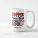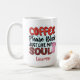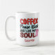 Funny coffee mug for women or men who love coffee. Great personalized gift for co workers who love caffeine quotes. If there is a coffee addict in your office , why not humour him or her with this cute saying. Colourful and stylish for your office staff.