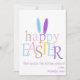 The design features fun and colourful typography of the Easter wish "Happy Easter" along with bunny ears. The design offers customizable typography that currently reads "Best wishes this holiday season!" for wish and name personalization.