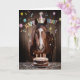 This funny personalized horse birthday card is perfect for anyone who loves horses. The front of this card has a horse wearing a birthday hat. The horse surrounded by birthday decorations and a cake with candles. You are able to personalize the inside of this card with your name and custom message, or you can leave the message as "Wishing you a very happy birthday".