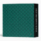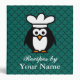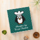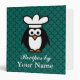 Personalized penguin chef recipe binder cookbook with quatrefoil pattern design. Custom kitchen cook book with personalizable name. Funny chef bird cartoon wearing a cooks hat. Cute animal drawing. Customizable teal blue background colour behind trellis lattice. Availabe as 1 1.5 and 2 inch.