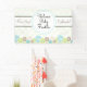 Sweet boy's baby shower banner with your custom name, turquoise teal blue and green garden flower shapes and adorable personalized details.