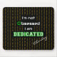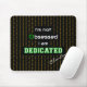This black background mousepad has a binary-inspired pattern of repeating 0's and 1's in orange, and the quote "I'm not obsessed I am DEDICATED" in the centre. The O of Obsessed is styled to resemble a green computer power button. There is also a personalization option - enter the name, initials, or text of your choosing, which appears in white script (or delete this if not required).