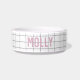 Add a modern touch to your pet’s mealtime with this geometric personalised pet bowl. Featuring a stylish grid pattern in soft pink and white color way and custom printed with your pet’s name, this bowl is perfect for both dogs and cats.