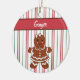 Peppermint stripes and a gingerbread girl decorate this Christmas ornament! Customize this ornament by changing the name. Use this cute gingerbread ornament as a gift, Christmas tree decoration, decor, etc....The designs are from original art.