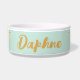 Cute cream gingham dachshunds circle this mint green pet bowl. Add your little sausage dog's name in a script font on the centre of the bowl. Match your dog's dinnerware to your farmhouse kitchen. This classic pattern and colour scheme is also great for preppy pup parents and cottagecore aesthetics.
