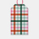 Personalized Gingham Christmas Pattern Gift Tag, with Red, Pink and Green trendy Christmas colour combination. A simple bright, and classic gingham with a modern twist. A cute garland detail at the centre with option to personalize with Merry Christmas and your Family Name.