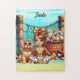 Personalized Girl's name sitting with her puppy Jigsaw Puzzle