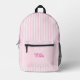 Personalized pink lines girls Printed Backpack.Add a splash of style to your little one’s daily adventures with our Personalized Pink Lines Girls Printed Backpack. Featuring a chic and modern pink stripe design, this backpack is both cute and functional — perfect for school, playdates, or travel. Personalize it with your child’s name to make it uniquely hers! With spacious compartments, adjustable straps, and durable fabric, it’s designed to keep up with her busy, colourful world in the most stylish way.