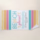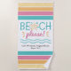 Celebrate summer vacations or a girl’s getaway weekend at the beach with this fun beach towel that features colourful typography that says, “Beach Please,” a simple illustration of a seashell with ocean waves, bold tropical stripes, and customizable text. Modify the event, place, and date to create a unique keepsake that your friends will remember every time they reach for this towel.