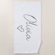 Make a splash with this chic personalized girly beach towel featuring your name and a charming heart design. Perfect for lounging at the beach, poolside, or adding a stylish touch to your summer adventures, this towel combines practicality with personality. Made from soft, absorbent material, it’s both functional and fashionable. A great gift idea for birthdays, vacations, or anyone who loves feminine and trendy accessories.