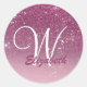 Personalized Girly Pink Glitter Sparkles Monogram Classic Round Sticker