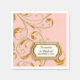 NOTE: This is a flat printed image, there are no jewels, raised layers or gold metallic elements. COLOR PALETTE: blush shell pastel pink, soft creamy white with faux gold metallic glitter look DESIGN COLLECTION: Matching formal dinner reception, bridal shower or rehearsal dinner personalized napkins for easy decor enhancement. Inspired by Old Hollywood and her heyday glam era, this wedding invitation set is perfect for elegant, sophisticated, modern wedding celebrations. A classic, beautiful swirling leaf damask style pattern has been graphically designed to look like a silver edged gold glittery embroidered lace design with a golden buckle that has a diamond border over faux glitter. A contemporary typography layout for your invite wording and information updates this vintage retro design. A gorgeous, unique and pretty design for the most discriminating bride.