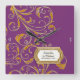 NOTE: This is a flat printed image, there are no jewels, raised layers or gold metallic elements. COLOR PALETTE: violet purple, soft creamy white with faux gold metallic glitter look DESIGN COLLECTION: Matching personalized wedding clock for anniversary, bridal shower or wedding gift. Inspired by Old Hollywood and her heyday glam era, this wedding invitation set is perfect for elegant, sophisticated, modern wedding celebrations. A classic, beautiful swirling leaf damask style pattern has been graphically designed to look like a silver edged gold glittery embroidered lace design with a golden buckle that has a diamond border over faux glitter. A contemporary typography layout for your invite wording and information updates this vintage retro design. A gorgeous, unique and pretty design for the most discriminating bride.