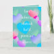 The design features colourful hearts and script typography of words of love suitable for celebrating Valentine's Day or any of the couple's special days. The text, which reads "love," "admire," "cherish," "hold," "promise," and "share," as well as the inside message which reads "My heart flutters every time I think of you." are customizable. Colours featured in the hearts are shades of blue, red, pink, purple, and green.