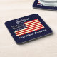 Add a touch of customized patriotism to your home or office with our "God Bless America" flag coaster. This durable coaster features a classic American flag design against a deep navy background, emblazoned with the inspiring phrase "God Bless America." It's fully customizable, allowing you to add your own family name and a significant year, making it a truly unique and thoughtful item. Perfect for protecting your tables from condensation while celebrating national holidays, honouring military service, or simply showcasing your love for the USA year-round. A practical and meaningful gift for hosts, patriots, or as a commemorative keepsake.