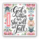 God is Within Her : Psalm 46:5 Christian sticker . A watercolor floral border in soft pinks and purples surrounds elegant gold script that reads “God Is Within Her, She Will Not Fall". personalized with name.