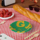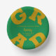 GRAD in bold gold lettering curves around the edges of these green graduation paper bowls personalized for your graduate - perfect for serving snacks, salads, desserts and more. MATCHING items and more pre-done colour combinations in our store.