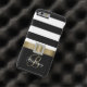 This preppy monogrammed design is made up of a bold black and white horizontal striped pattern, a PRINTED gold sating ribbon with a square diamond brooch and a black bottom portion you can personalize with your name and your monogram initial in gorgeous script fonts. Be stylish, cool, sophisticated and girly all at the same time. For her. the fashionista that follows the latest trends. Design by Elke Clarke©. Graphics licensed for use.