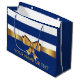 Personalized Gold, Blue Bold Stripes Golden BOW Large Gift Bag