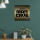 Add your own name to this fun man cave poster! It features an awesome diamond plate pattern background with a rich gold finish that fades to black at the top and bottom and bold black lettering to spell out your name and "man cave". The lettering even has screws to complete the awesome industrial look.