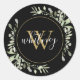 Personalized Gold Monogram Elegant Greenery Black Classic Round Sticker