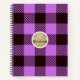 Elegant, modern and trendy customizable notebook features "personalized name & monogram" on a golden badge and Orchid / black plaid tartan background.