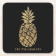 Personalized Gold Pineapple on Black Square Paper Coaster