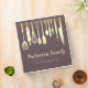 This is Personalized Customize Black Silver Utensil Family Recipes cookbook binder. This personalized recipe book is full of favourite dishes, organized into one beautiful binder. Personalized with your text on the front, and featuring an original illustration of a gold fork, knife, and spoon surrounded by black background. Kitchen tools Recipe binder would be perfect for anything. You can easily change text colour, font, size and position by clicking the customize button.You can Fill with your own recipes to create a do it yourself cookbook.