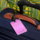 Personalized Gold Trim Pink Stripes Luggage Tag