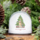 Celebrate the season with this adorable Golden Retriever dog snow globe! A festive green Christmas tree with ornaments, bows, and wrapped presents sets the perfect backdrop for a lifelike dog illustration. Personalize with your family name, your pet’s name, and the year. Perfect for dog lovers, pet parents, and families who want a unique gift that showcases their furry friend.