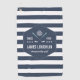 Perfect for dads, retirees or anyone who loves golf, this personalized golf towel in rich navy blue and white stripes features a golf ball & clubs logo that can be customized with his name, birth year, retirement year or special year.