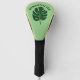 Personalized golf driver cover protector with green Monstera palm leaf. Unique gift for golfers. Cute print with tropical floral design. Elegant typography template for name or monogram letters. Trendy golfing accessories for women who love playing golf. Protect your golf clubs with monogrammed protectors. Also nice as retirement gift idea for her. Unique sports presents for golf player, friends, mom, wife, daughter, dad, husband, boss, instructor, sports coach, family, co worker, colleague, retiree, caddie etc. Green or custom colour.