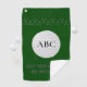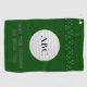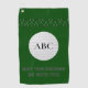 For him or for her, add your own caption and initials to personalize this dark green golf towel. Designed for a keen golfer, the default text is "MAY THE COURSE BE WITH YOU". This fun design has a border pattern of golf clubs and a large white golf ball with space for our initials.