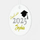 Celebrate a high school or college graduation with this personalized keepsake ornament. Original design by Night Owl's Menagerie, 2023.