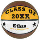 Personalized graduation gift for any year graduating class as you can easily customize the graduation year. Also personalize with your grad's name and school name. An ideal gift for grads who love to shoot hoops and play basketball or even to give to school alumni for college and school class reunions! Yellow gold school colour. Created by © Lesruba Designs. Please email me directly for custom colours or other requests: info (at) lesrubadesigns (dot) com or click on the chat bubble icon to the left of the cart symbol at the top of any Zazzle page to send me a message instantly.