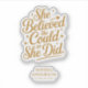 Enhance graduation decor with this inspirational vinyl decal featuring the empowering "She Believed She Could So She Did" quote in an elegant gold script. This custom cut adhesive decal is perfect for personalizing laptops, windows, or any smooth surface. A wonderful way for any student to showcase their achievement and commitment to success with this motivational quote.