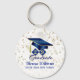 Elegant gold and blue Graduate, cap, stars and diploma adorn this keychain along with your graduating year. Add your name and school for a personal touch! Easy to personalize with custom options. Use the 'Personalize' button to customize the product, change the background color, or add text.