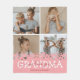 Personalized grandmother winter fleecy blanket featuring a 4 photo collage of the grandkids, a cute pink heart design, the saying "we love you grandma", and the childrens names.