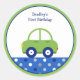 Personalized Green and Blue Car First Birthday Classic Round Sticker