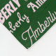A festive green Christmas blanket decorated in nine different fonts spelling your last name in white. Cute custom holiday gift with fun typography.
