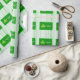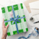 Personalize this cute wrapping paper with the recipient's name. Design has green and white stripes with green text box and happy green frog. Change placeholder text to your message or name.